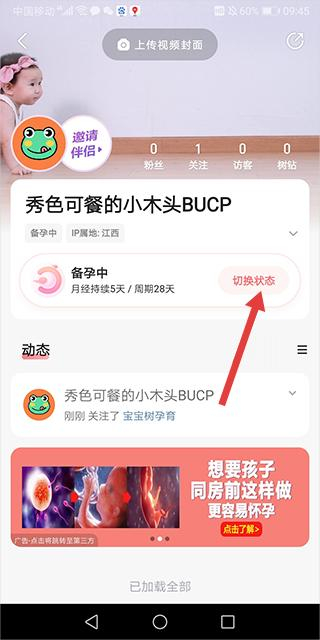 2、在个人主页,点击切换状态按钮。