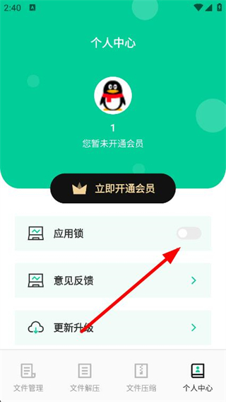 3、找到应用锁,点击开关按钮,即可完成开启。