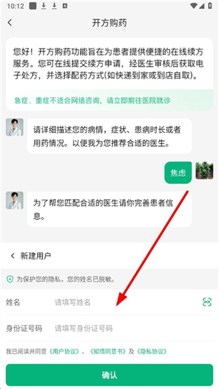 3、根据系统提示,完善患者信息并勾选相关协议,点击确认提交,系统会匹配对应的医生。