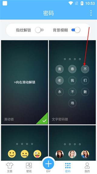 3、在密码页面中,选择文字密码锁样式,点击进入该密码锁的具体设置界面。