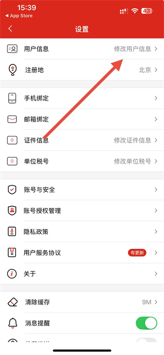 3、在设置页面中找到用户信息选项,点击该选项进入用户信息展示界面。