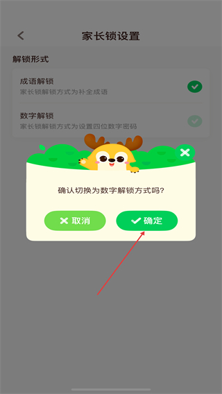 2、在解锁形式中,点击数字解锁对应的选项,触发切换确认弹窗。