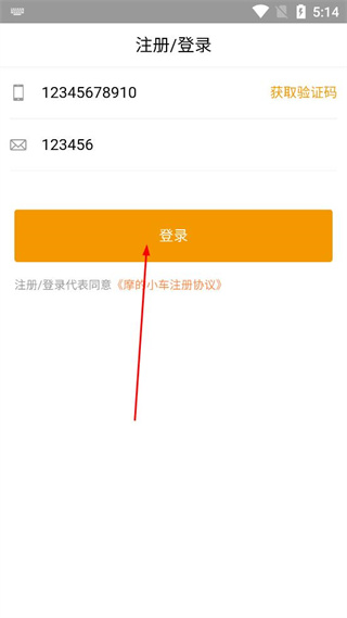 3、确认手机号和验证码都填写完毕后,点击页面中的橙色登录按钮,同时默认同意注册协议。