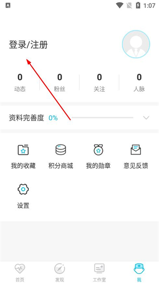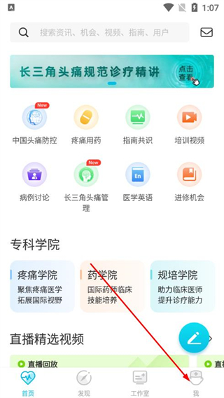1、打开医者无界app首页,点击底部我的选项,进入个人中心页面。