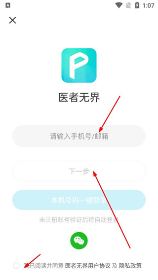 3、在登录页面,输入手机号/邮箱,勾选我已阅读并同意协议,点击下一步。