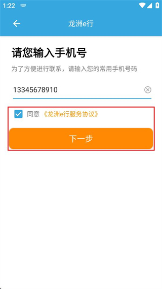 4、确认手机号码已输入且协议已勾选后,点击界面中的下一步按钮,完成登录流程。