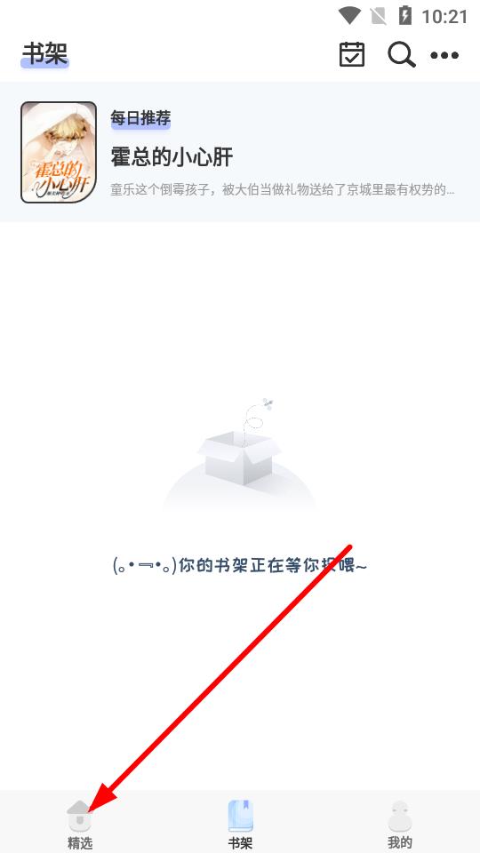 1、打开一纸小说软件,点击页面底部的精选选项。