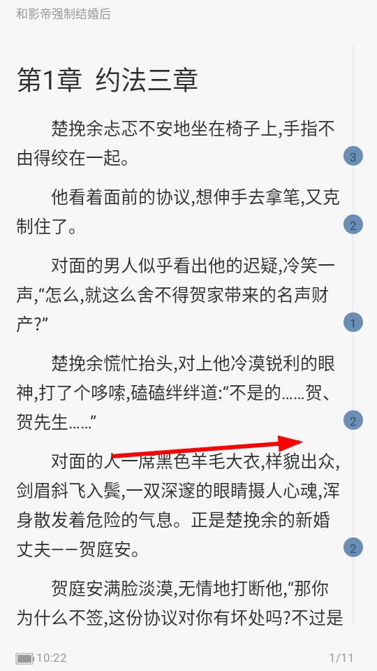 4、进入阅读界面后,即可查看小说内容,如第1章约法三章等章节内容。