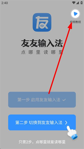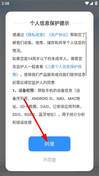 1、打开友友输入法App,在提示弹窗中点击同意。
