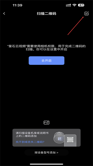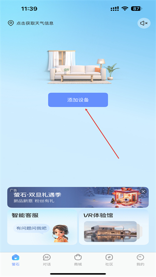 1、在萤石云视频的界面内,点击添加设备按钮。