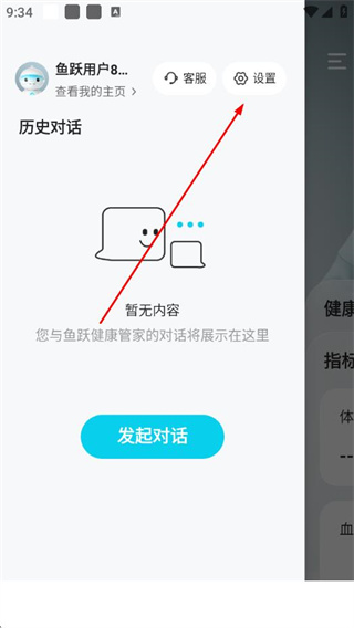 1、打开鱼跃健康管家app的健康页面,点击左上角的菜单图标,展开侧边栏。