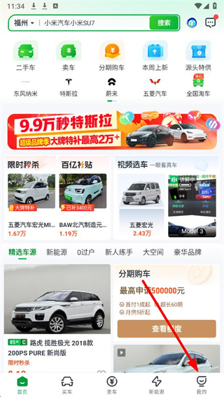 1、在瓜子二手车主界面,点击底部我的,进入个人功能页。