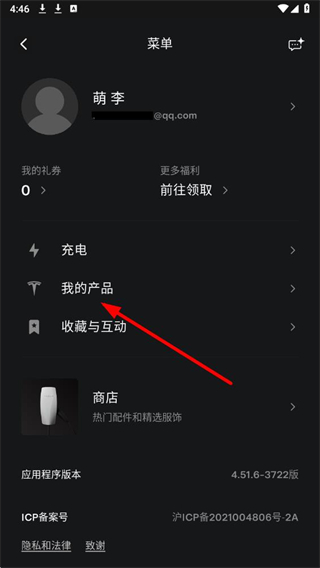 2、在菜单页面中,找到我的产品选项并点击,进入产品管理页面。