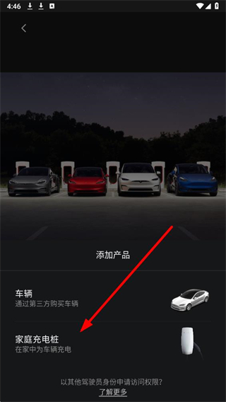 4、在产品管理界面,选择家庭充电桩选项,按提示完成充电桩的绑定操作即可。