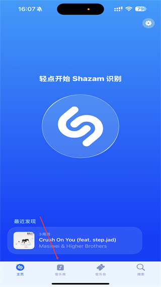 1、打开Shazam应用,进入到首页,点击右上角搜索的图标。