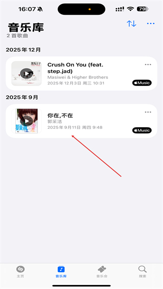 6、识别成功的音乐会在软件里面为用户们展示,方便用户们找到识别的音乐。