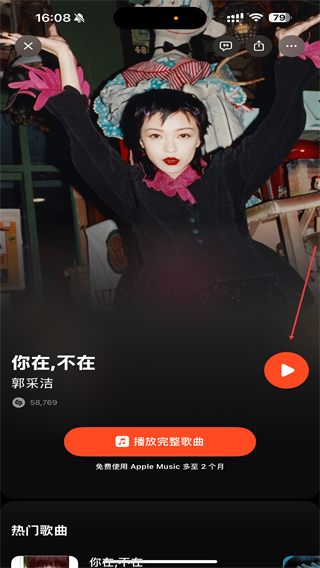 3、进入音乐详情页面内,点击播放的按钮即可开始。