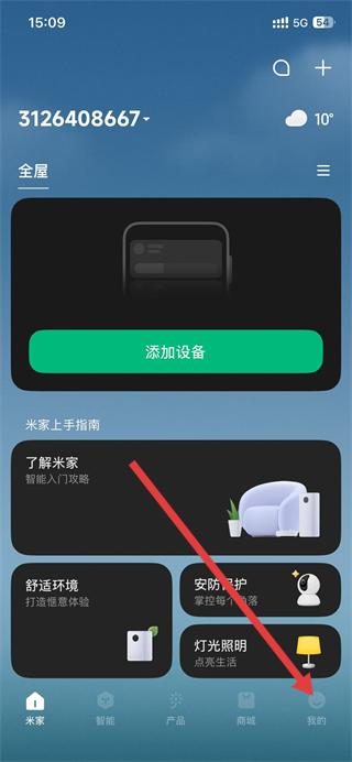 1、打开小米智能家庭app,点击底部导航栏的我的。