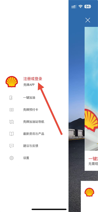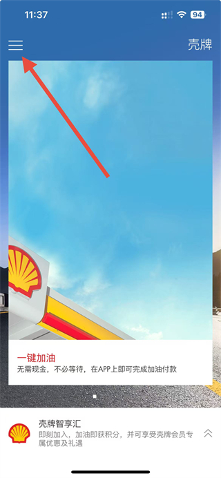 1、在壳牌app首页,点击左上角菜单按钮,展开侧边栏。