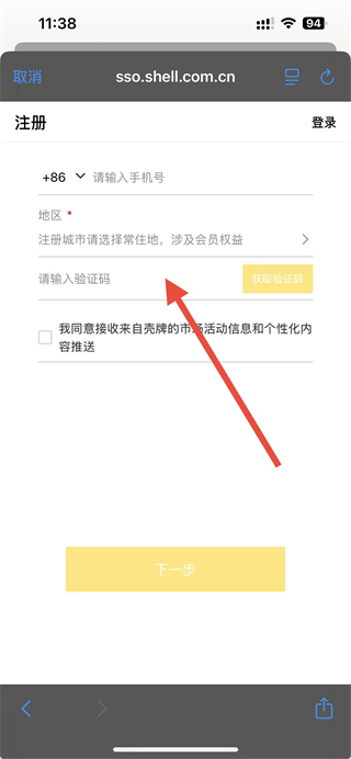 4、在页面输入手机号、选择地区,获取验证码后勾选协议,点击下一步,按提示完成后续信息即可完成账号注册。