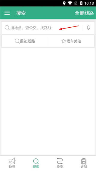 3、在搜索页面的输入框中,填写要查询的地点公交或路线相关内容进行搜索。