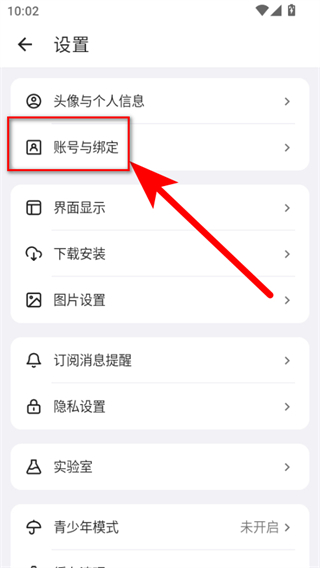 3、在设置页面中,点击账号与绑定选项进入账号绑定信息页面。