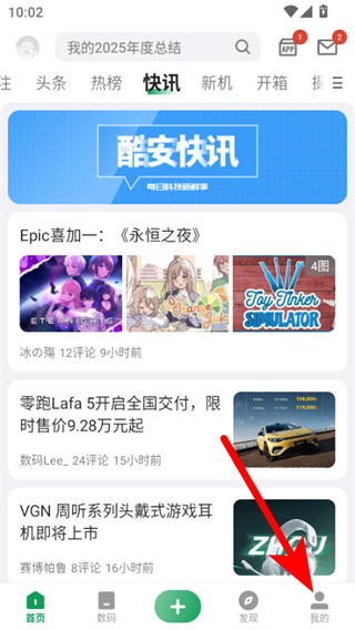 1、打开酷安app,点击底部导航栏的我的选项进入个人中心页面。