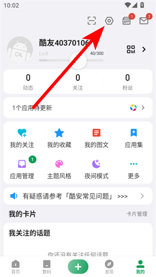 1、打开酷安APP,点击右上角设置图标,进入设置页面。