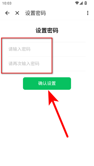 5、在设置密码界面依次输入密码和确认密码,点击确认设置按钮完成密码配置。