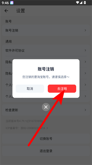 4、在弹窗中点击去注销按钮,即可按流程进行淘宝主播账号注销。