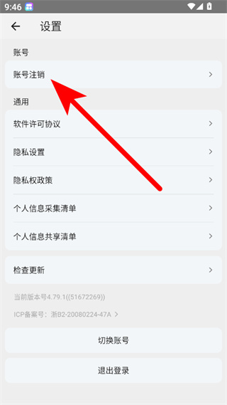 3、在设置页面上方,点击账号注销选项,弹出账号注销确认弹窗。