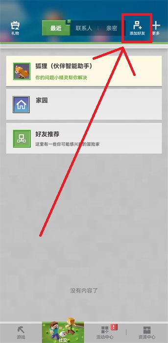 2、在社交界面中我们可以看到右上角会有一个【添加好友】点击就可以进入到该功能界面;