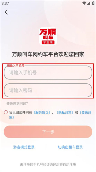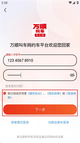 1、打开万顺叫车车主端,勾选已阅读并同意相关条款,点击界面中的同意并授权按钮。