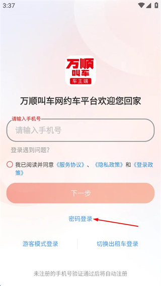 2、进入欢迎页面后,找到密码登录选项,点击该选项进入密码登录的操作界面。