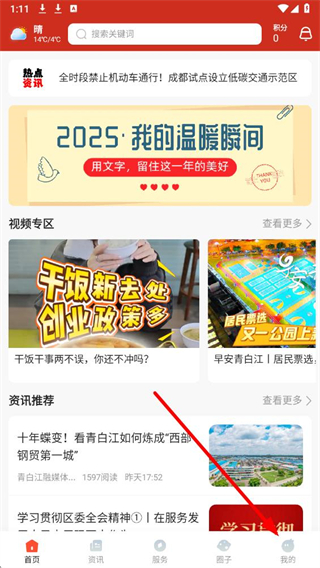 1、进入i青白江app,点击底部导航栏我的选项,进入对应操作页面。