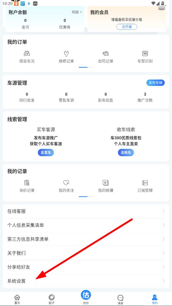 1、打开车300APP,点击底部导航栏最右侧我的进入个人页面。