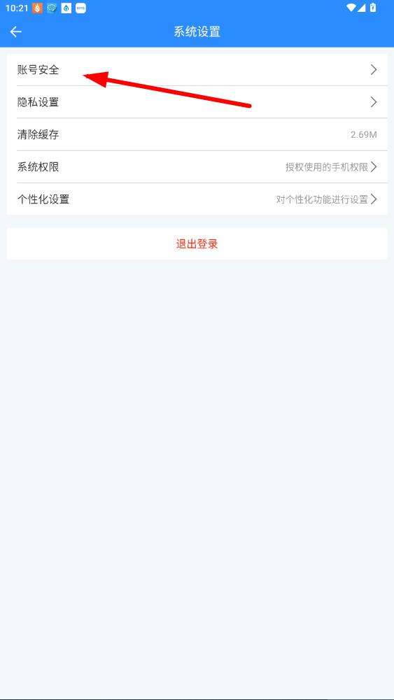 3、进入系统设置页面后,点击账号安全。