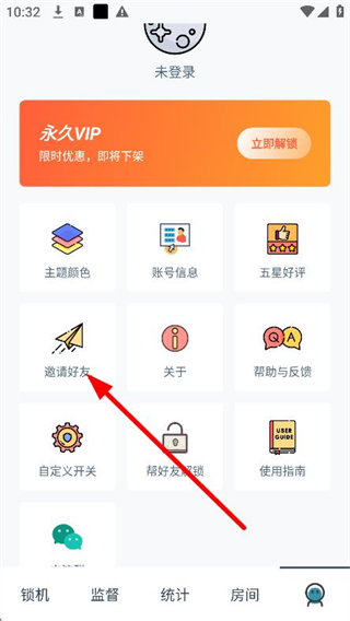 当你按下停止按钮或者某一种“使用手机”的操作,倒计时结束,这时在成绩界面可以按下分享按钮进行社交分享;