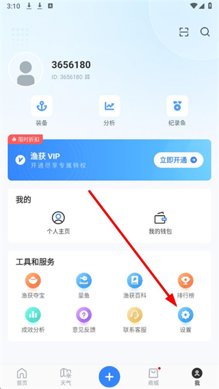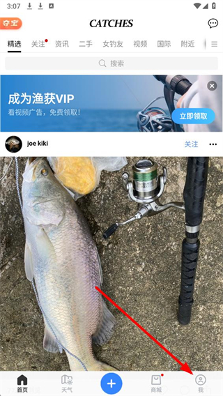 1、在渔获主界面,点击底部我的选项,进入个人中心页面。
