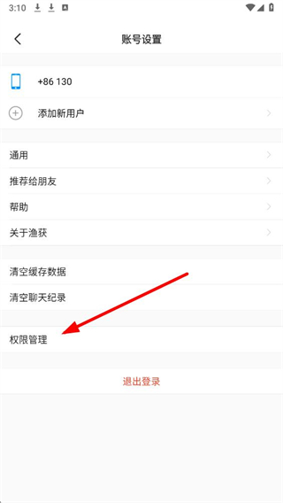 3、在账号设置页面,点击权限管理选项,进入权限管理的详情页面。