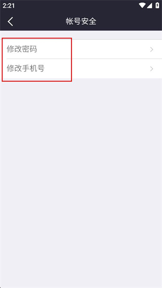 4、在账号安全界面中,可选择修改密码或修改手机号选项,进行账号相关信息的调整。
