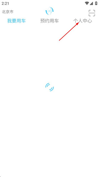 1、打开用车应用,进入我要用车页面后,点击页面右上角的个人中心选项,进入个人中心界面。