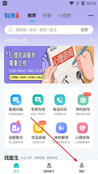 1、打开有来医生APP,点击底部导航栏的我的选项,进入个人页面。