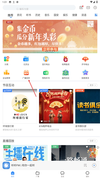 2、进入广播回听的页面内,点击要回听的类型。