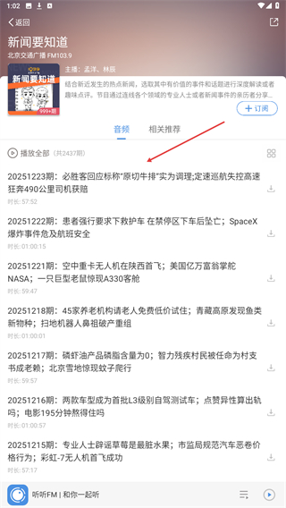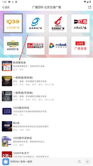 3、进入详情页面内,选择并点击要回听的广播名称。