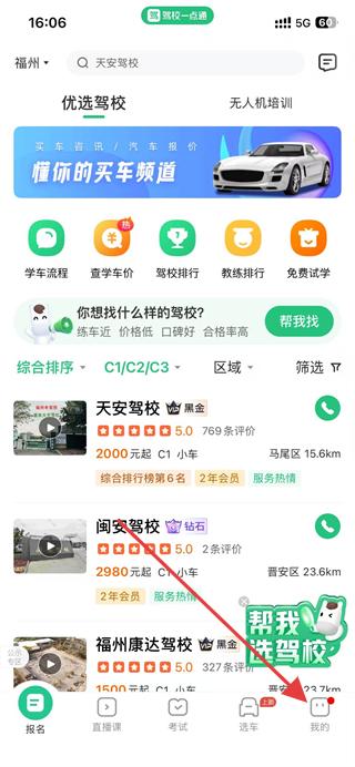 1、打开驾校一点通APP,进入我的页面,在我的工具区域点击我的驾校,进入绑定驾校界面。