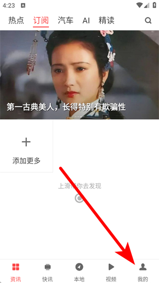 1、打开ZAKER,在订阅界面点击添加更多,进入发现频道列表。