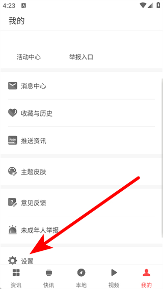 2、在我的页面点击设置,进入应用的设置操作界面。