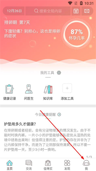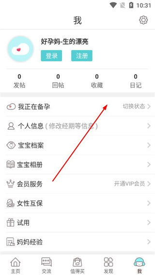 1、打开好孕妈APP,点击底部导航栏的我选项,进入个人页面。