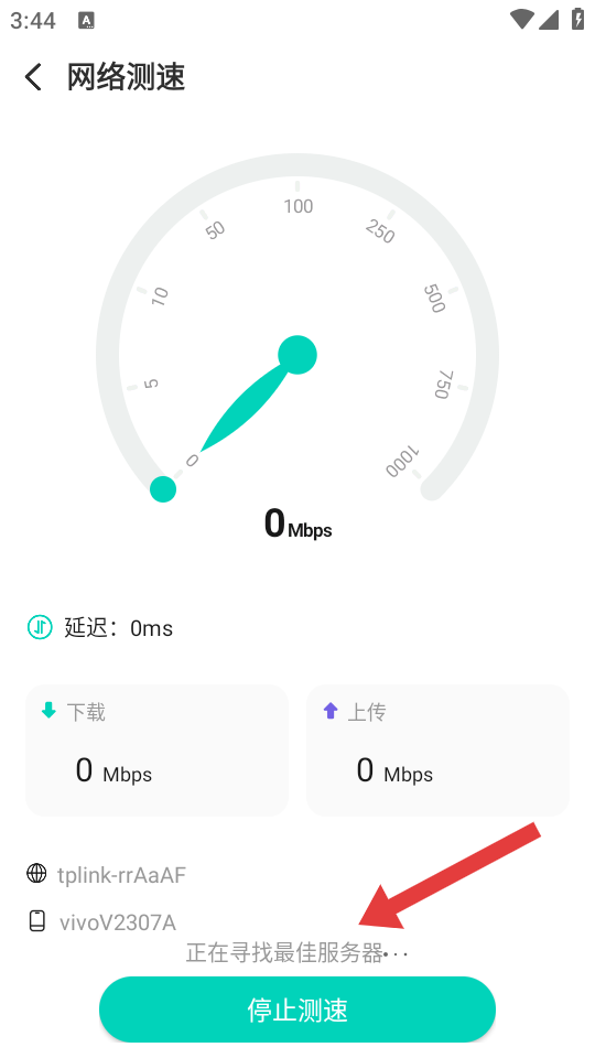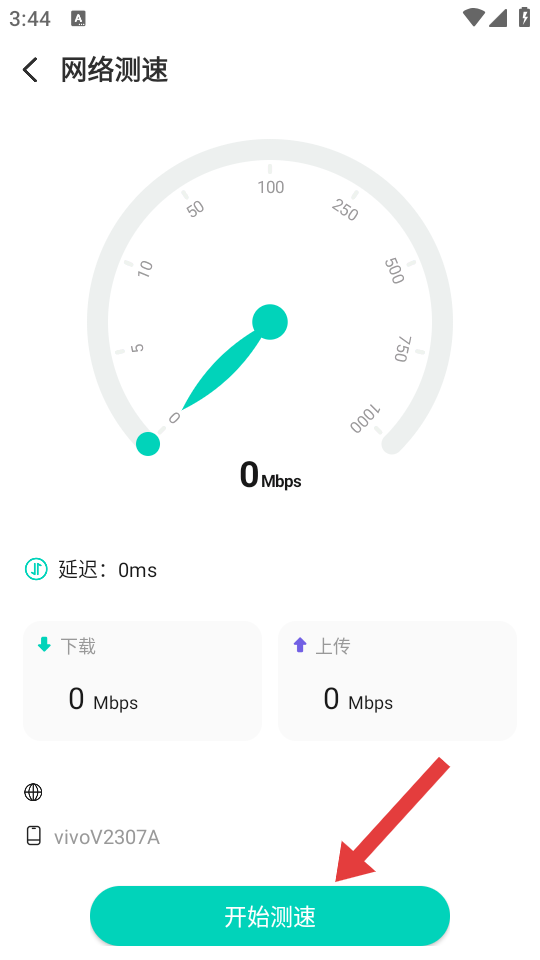 2、在网络测速页面,点击底部的开始测速按钮,启动网络测速。
